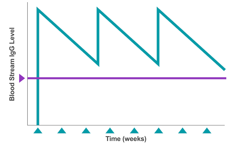 | Ig Levels5 | Steady state Ig levels | Peaks and troughs in Ig levels |