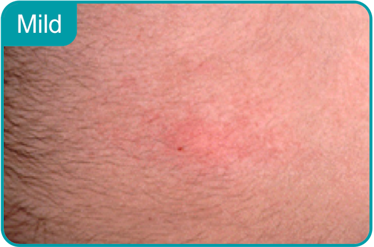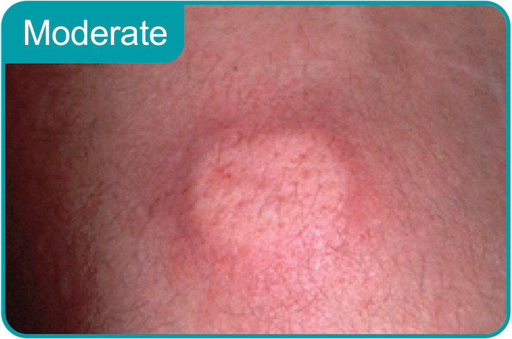 Moderate local site reactions with blanching of the swelling and a ring of erythema (redness)