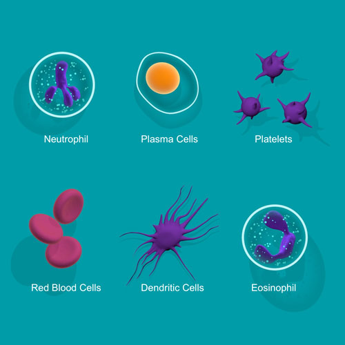 Stem cells: These cells have the potential to differentiate and mature into the many different types of cells of the immune system.